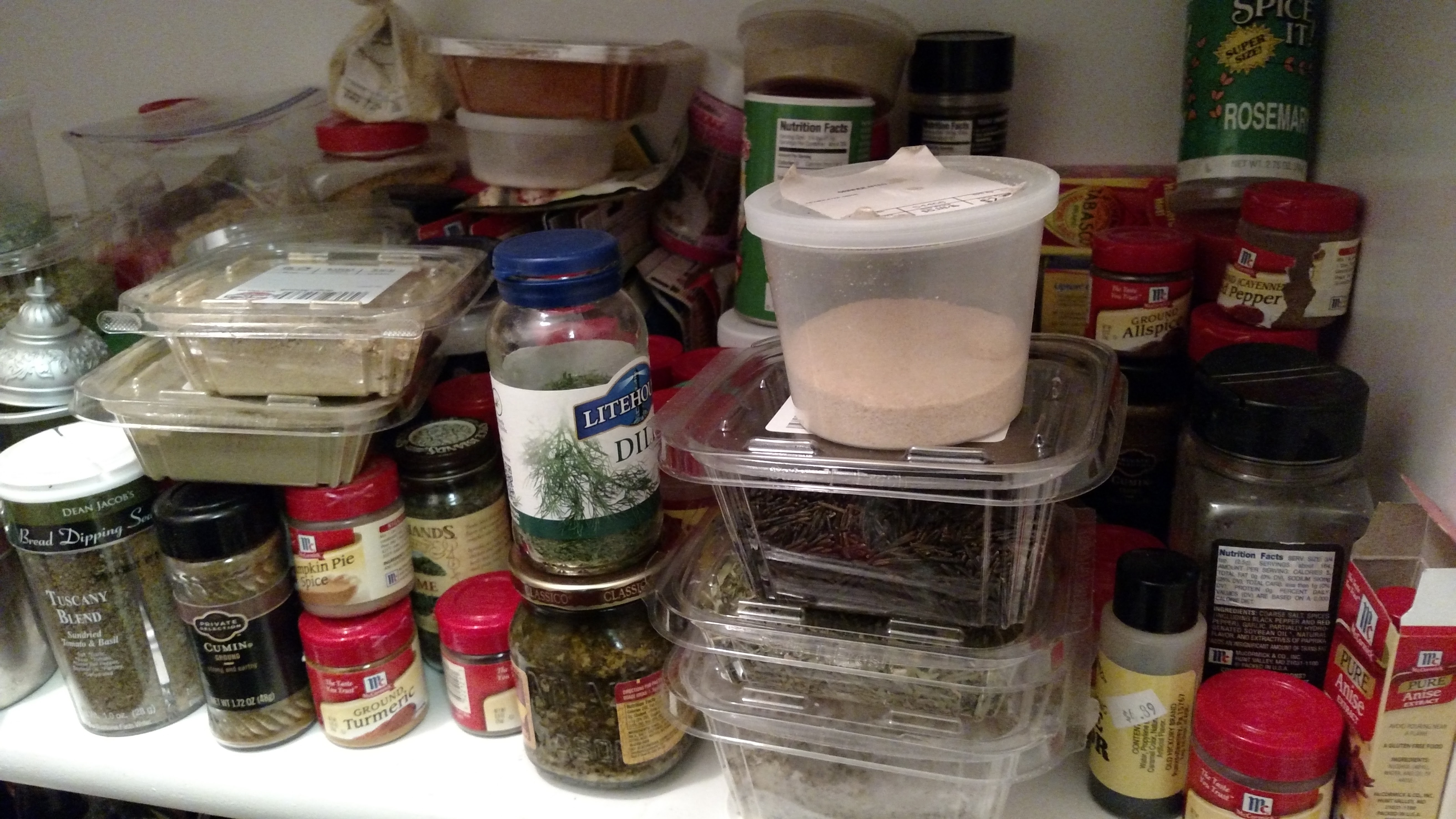 The more we experimented with different dishes, the more out of control our spice shelf became. We had stacks of spice bottles covering half of a pantry shelf to the point that it was impossible to find anything and the spices in front buried the spices behind.
