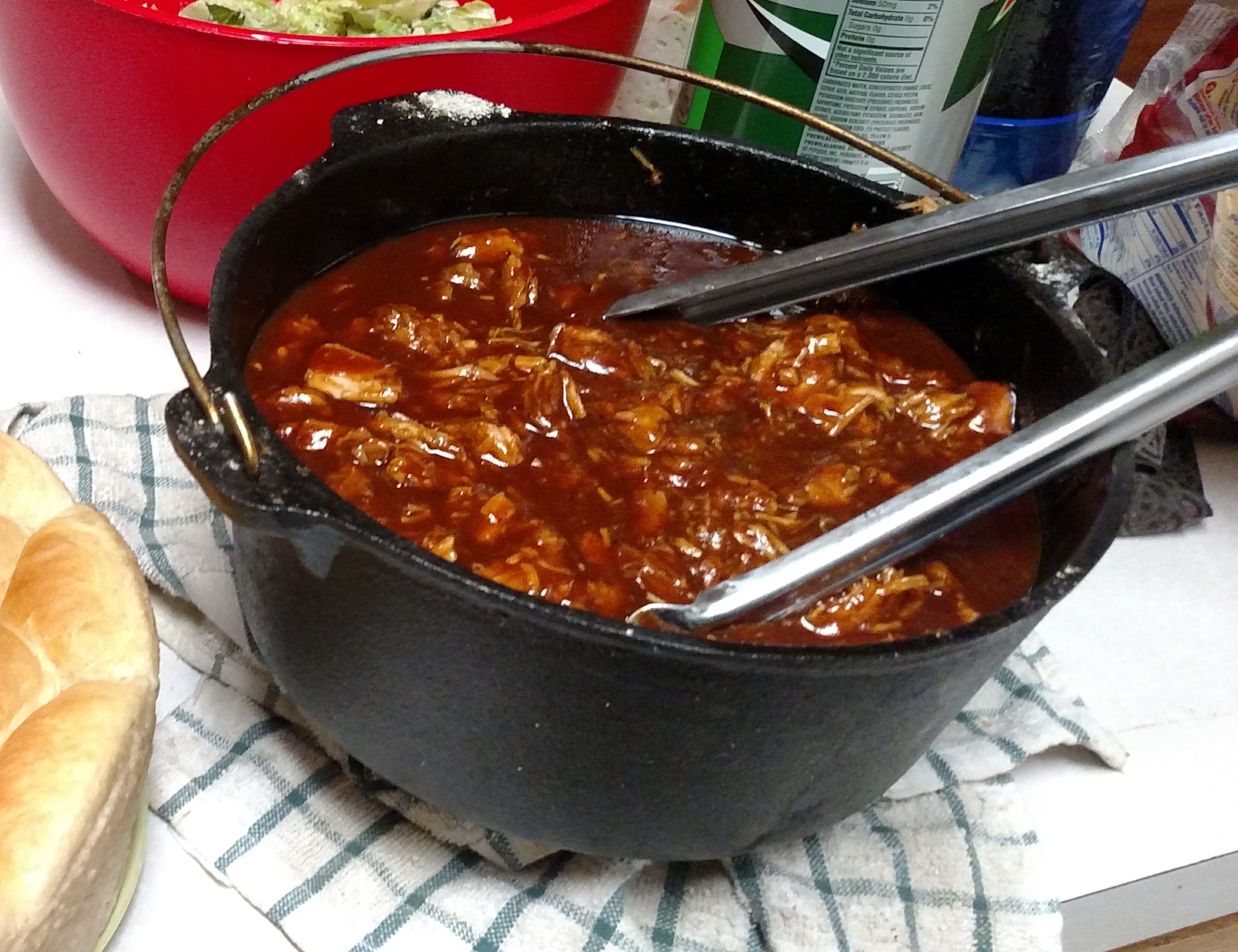 - Cook until tender enough to shred easily, turning occasionally and adding more coals as necessary.