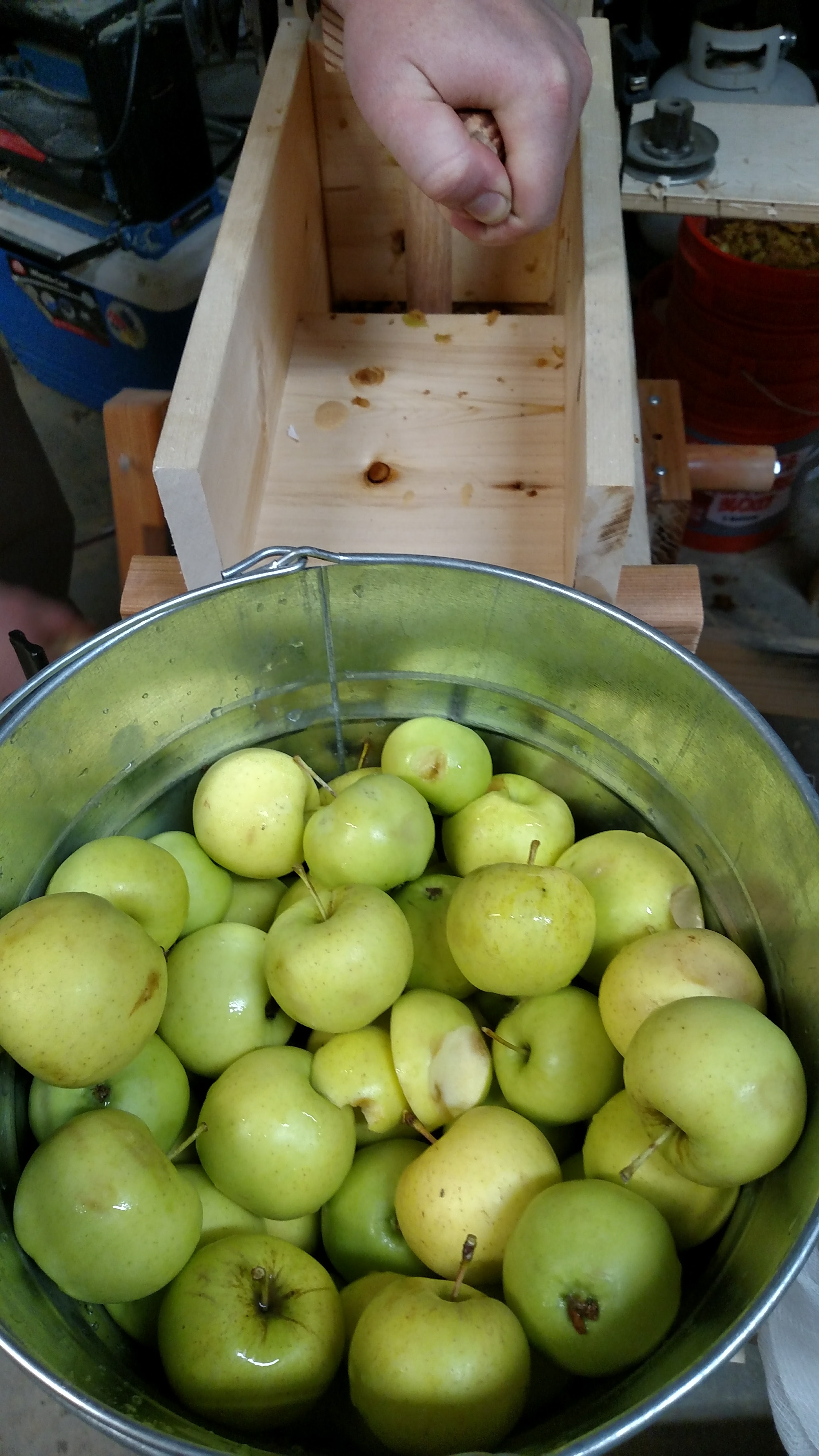 I spent a lovely day picking apples with my parents while Gordon built an apple grinder and press. He used these plans from Matthias Wandel for the grinder and designed a small press using a scissor or bottle jack.