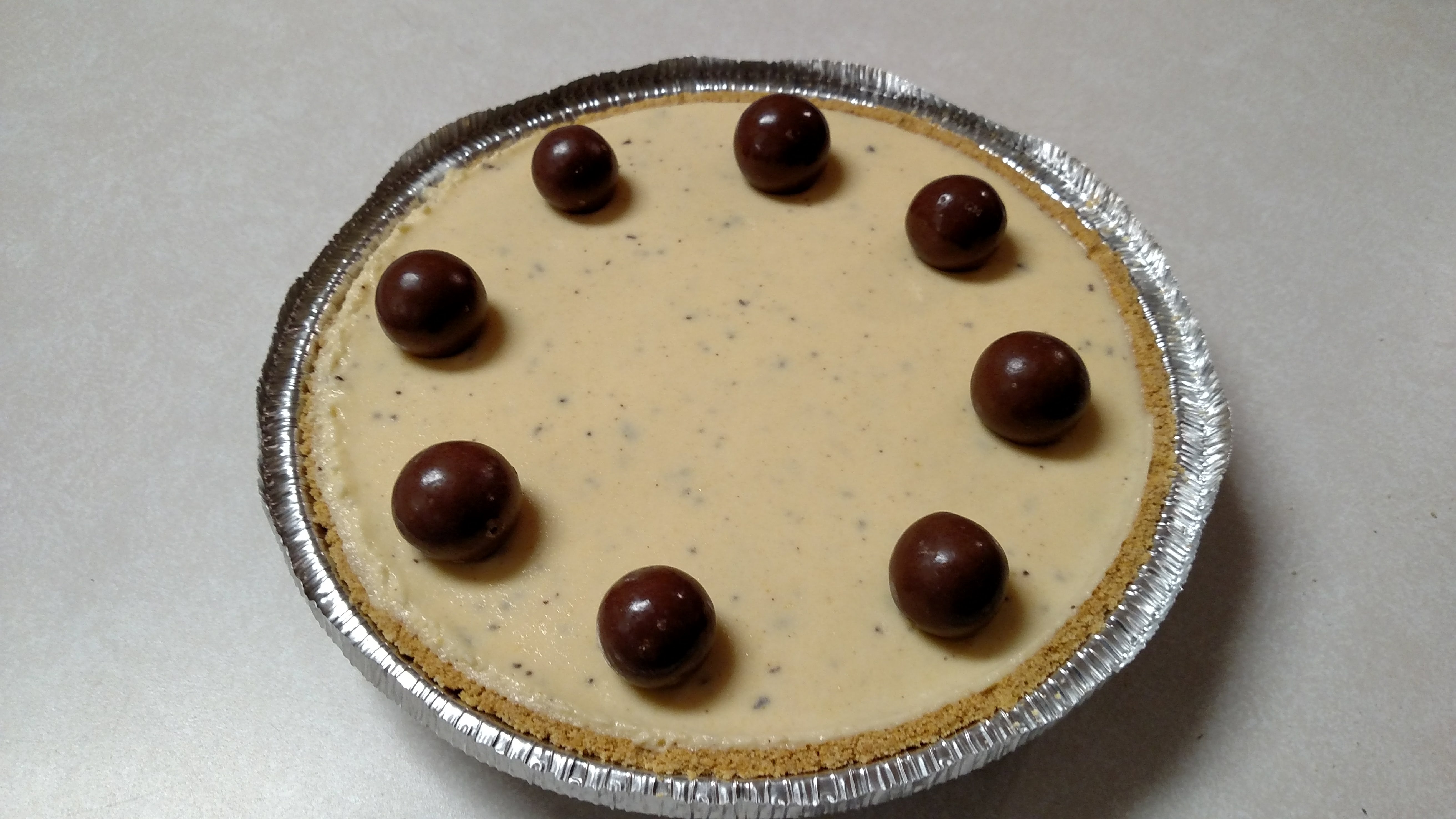 Chill for an hour. At this point, you can decorate the pie however you want and eat it. It tastes like an extra creamy cream pie. You can also put it in the freezer if you want to get the real ice cream experience. Just pull it out early enough to soften so you can cut it.