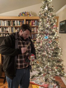 So Gordon made an adorable log, we ripped a Santa hat off a pretty terrible wine coozie from the dollar store, and I spent more time than necessary making a tiny quilt. Now he sits proudly by our tree and we force everyone who comes over to hear about Tió de Nadal. We’re all winners in this I think.
