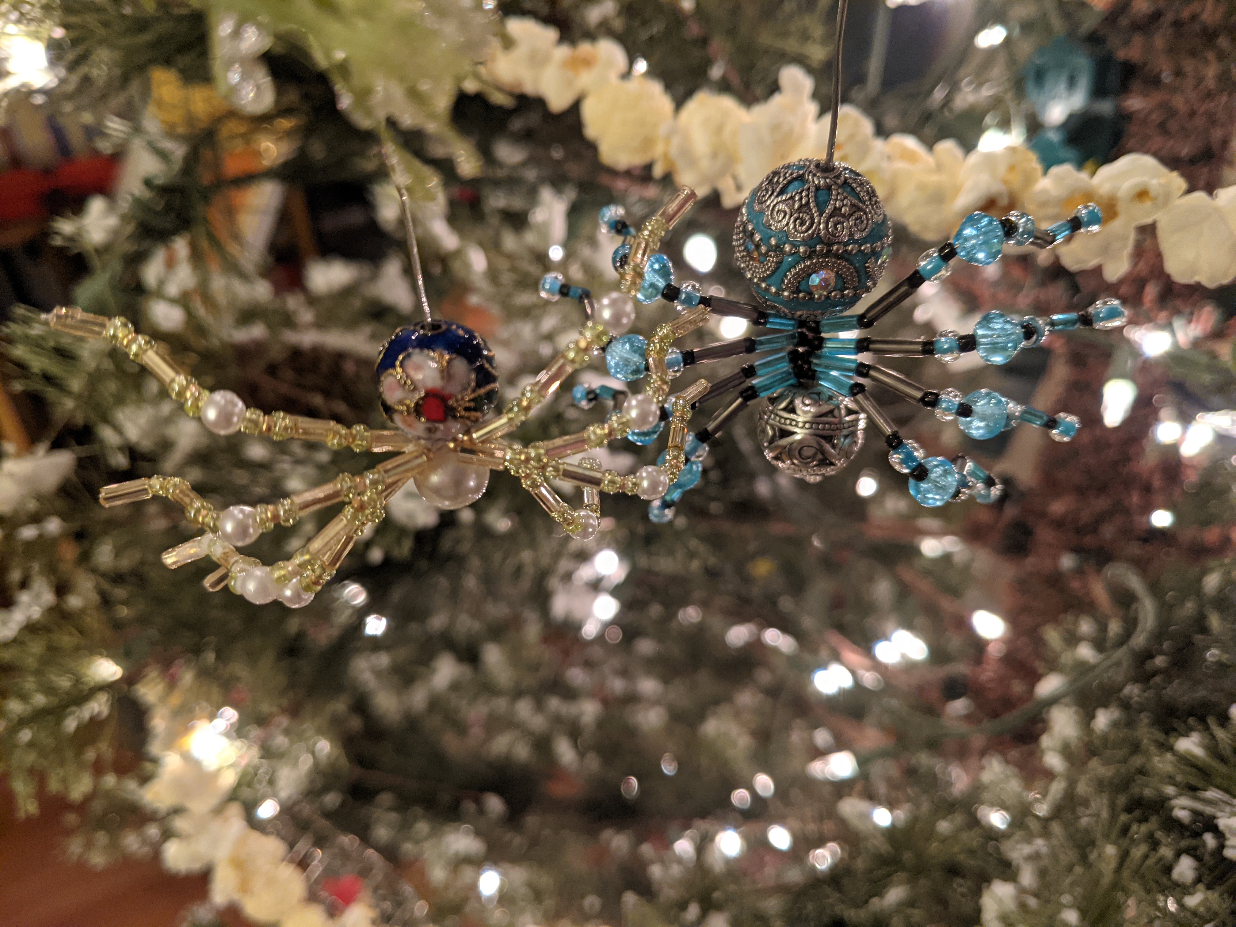 As with all folktales, there are several versions of how spiders became a part of the Eastern European Christmas tradition. In the version I’ve heard, a widow and her children lived in poverty in a tiny hut. One year, a pinecone dropped to the ground and started to grow. The children, eager to have a tree of their own, took great care of the sapling, watering it and ensuring it had plenty of sun. They would dream together of the beautiful decorations they would include on their tree for Christmas.