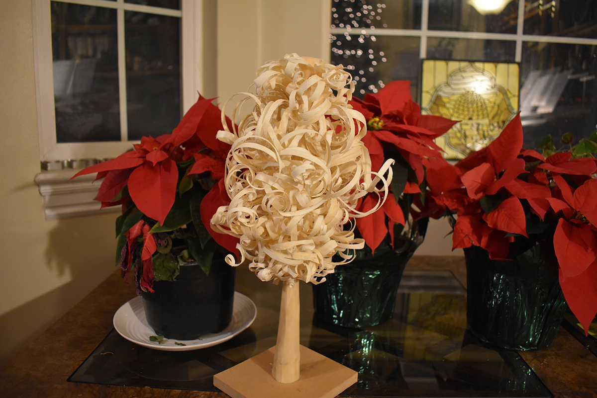 We didn’t have any willow or hazelnut branches, so we used apple. The curl pattern was different, but we really liked the results. I made a quick tree skirt for our tiny tree and now it has a place of honor on our international Christmas table.