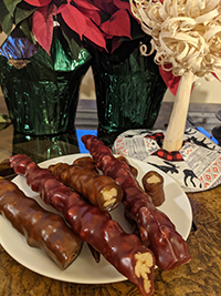 Doing 6-7 days worth of the 12 Days of Imported Christmas every year (this year we could actually get all 12, you never know) has changed our YouTube viewing habits. Gordon regularly types in “Christmas in [country]” just to see if there is anything we need to try. When he pulled up Christmas in Georgia, the first video was of a wizened old man using a draw knife to make long curled ribbons out of a willow branch. We knew immediately that we would be making Chichilaki.