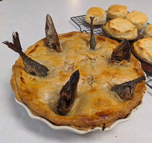 On the Third Day of Imported Christmas, we used seven different types of fish to make our own Stargazy Pie.