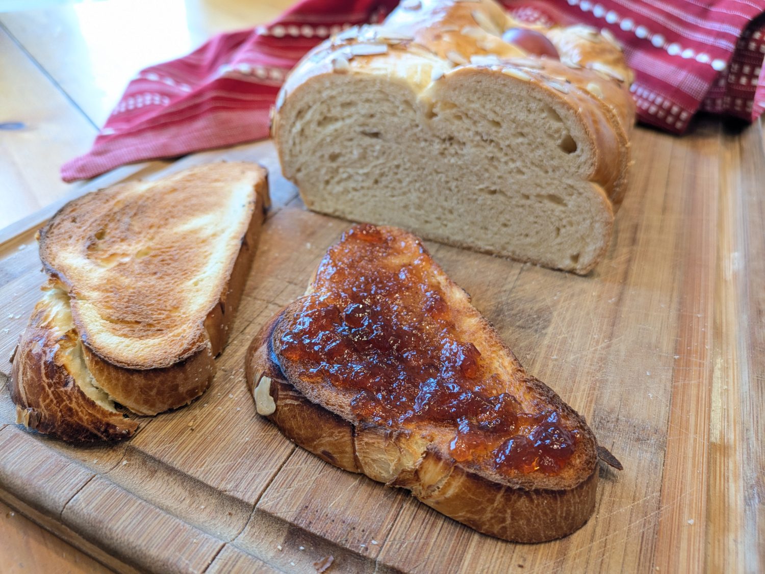 Tsoureki is part of a vibrant Easter feast that also includes whole-roasted lamb or goat and brings extended families together for eating and dancing. If you have any left, tsoureki is delicious with jam or made into French toast. There are plenty of tsoureki recipes available online, or if you realize baking several different kinds of Easter bread in one weekend is just not happening, you can order one. Χριστός Ανέστη!